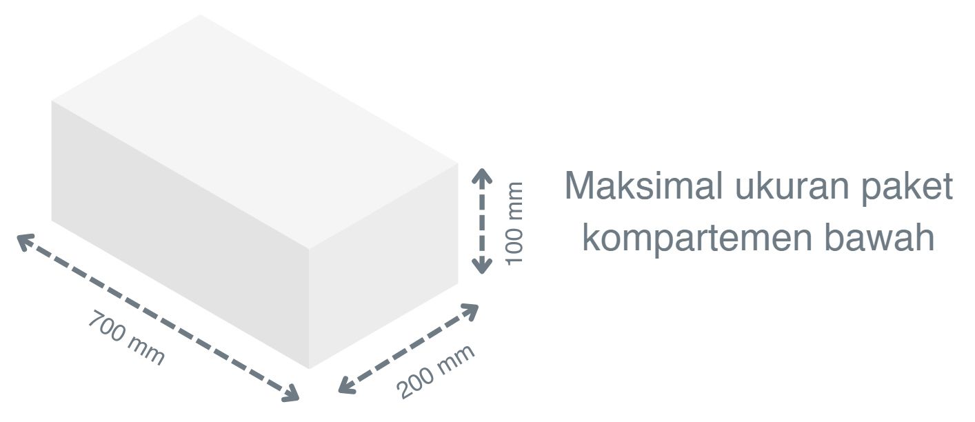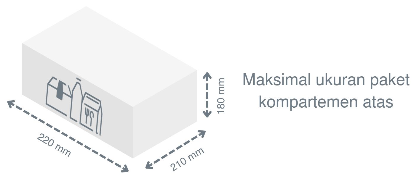 - Bagian Dalam Terdapat 2 Kompartemen, Bagian Atas untuk Paket Makanan/Minuman, dan Bagian Bawah untuk Paket Berupa Barang
